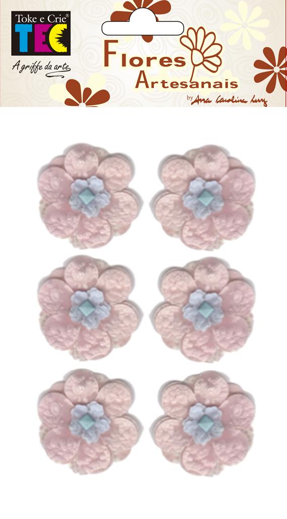 Flores feitas artesanalmente, confeccionadas em diferentes Rosa e Azul Pequena, ideal para decoração de peças artesanais, trabalhos em Scrapbooking, ScrapDecor e Scrap Festa e artesanato em geral, 6 unidades – Toke Crie