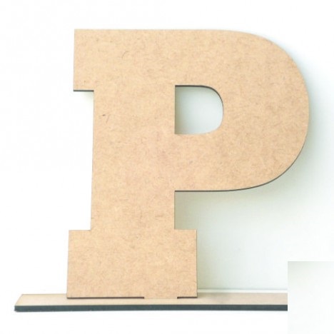 Letra P com base, cortada em mdf 3mm, com 17 cm de altura.
